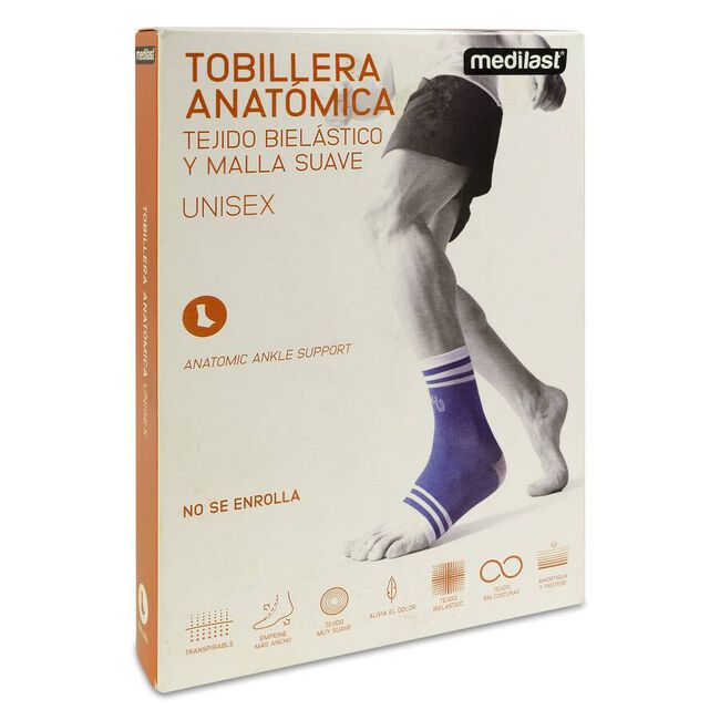 Medilast Tobillera New Concepts Bl- A S es un producto de uso ortopédico fabricado en tejido resistente de alta calidad que aplica compresión sobre la articulación para prevenir lesiones durante la actividad física continua. Su construcción en forma de media le confiere una adaptabilidad anatómica que se amolda a la forma natural de la extremidad para un uso cómodo y prolongado. Su textura externa es suave, lo que la hace fácil de manipular; además, la capa interna es agradable al contacto con la piel, previniendo la irritación y el enrojecimiento cutáneo.