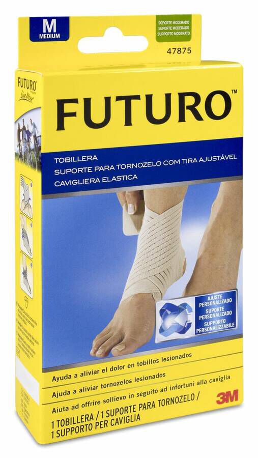 3M Futuro Tobillera Classic Talla M es producto ortopédico confeccionado a base de material de alta calidad. Aplica compresión continua sobre el tobillo para limitar su movimiento de flexo-extensión. Es especialmente útil para personas que realizan actividad deportiva intensa durante largo tiempo. Puede ser utilizada sobre pieles sensibles. Dispone de un diseño anatómico que le permite adaptarse a la morfología de la zona afectada con facilidad para proporcionar una sujeción fuerte y duradera. La pieza se mantiene en su lugar incluso durante el movimiento continuo. La textura suave evita la irritación por fricción sobre la epidermis.