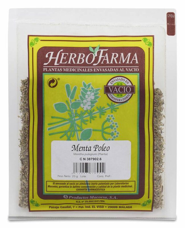 Herbofarma Menta Poleo - 20 g es una infusión de sumidad florida de menta poleo, ideal para aliviar problemas digestivos. Gracias a sus propiedades carminativas, alivia dolores estomacales y la flatulencia. Utilizada tradicionalmente en dispepsia y para el control de cólicos, esta infusión es una excelente opción para mejorar la digestión y el bienestar gastrointestinal.