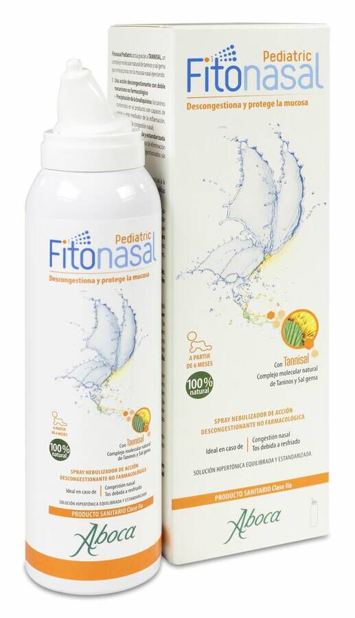 Fitonasal Pediatric Spray contiene Tannisal, un complejo molecular natural de Tananos y Sal gema ideal en caso de congestión nasal y tos debida al resfriado.