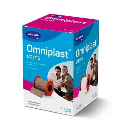 Esparadrapo de tejido resistente en color piel, con adhesivo sintético a rayas. Es resistente a la tensión, repelente al agua y tiene los bordes en zig-zag para que puedas rasgarlo con mayor facilidad.