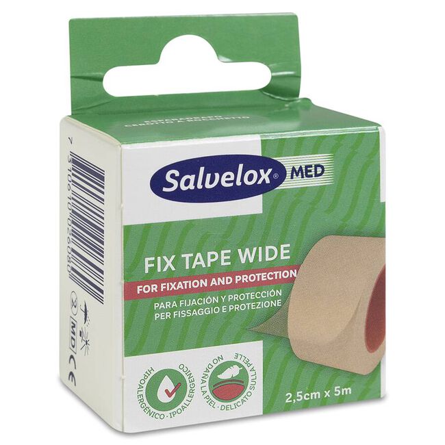 Salvelox Med Textile Tape 5 m x 2.5 cm es un esparadrapo diseñado para sujetar vendajes en la piel, de forma que la herida no entre en contacto con la suciedad. Es transpirable, muy flexible y cómodo, lo que permite realizar las actividades con normalidad.