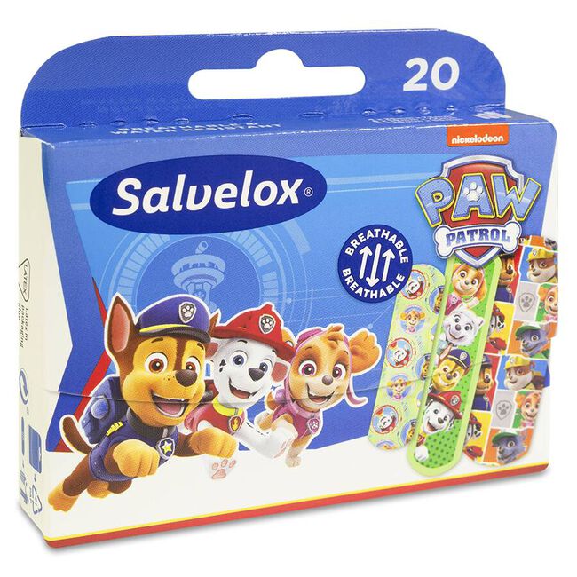 Salvelox Paw Patrol apósitos flexibles y duraderos con diseño de dibujos animados, son ideales para niños en constante movimiento, elaboradas para permitir la transpiración de la piel y con elementos resistentes al agua. Son un producto hipoalergénico, contribuyen a cuidar la piel y no causan reacciones alérgicas.