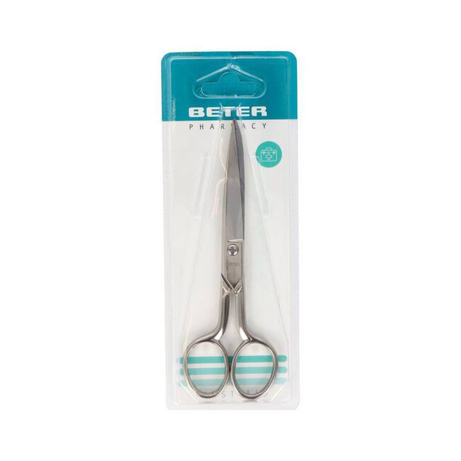 Beter Tijera Botiquín de 14 cm es un producto fabricado con acero inoxidable forjado y templado de gran resistencia y excelente calidad, a la vez que centrado y verificado, con dos hojas con gran filo y rectitud. Este acero inoxidable, como indica su nombre, está pensado para resistir la humedad de los espacios interiores del hogar, como el baño o la cocina. Esta tijera está pensada para ser multifunción, es decir, no está ideada únicamente para cortar utensilios usados en el mundo de la salud, sino además toda clase de materiales, como cabello. Esta tijera cuenta con dos aberturas donde colocar los dedos de igual dimensión, aunque ergonómicamente diseñados para promover una sujeción cómoda y suave, que otorgan un manejo total sobre el utensilio. Como estas aberturas son de dimensiones similares, este producto está pensando para ser utilizado tanto por diestros como por zurdos. En cuanto al envase, viene en un envase de poliestileno termosellado, para evitar accidentes cuando se portan, además de un soporte de cartón. Es de suma importancia que esta tijera sea utilizada únicamente por adultos responsables.