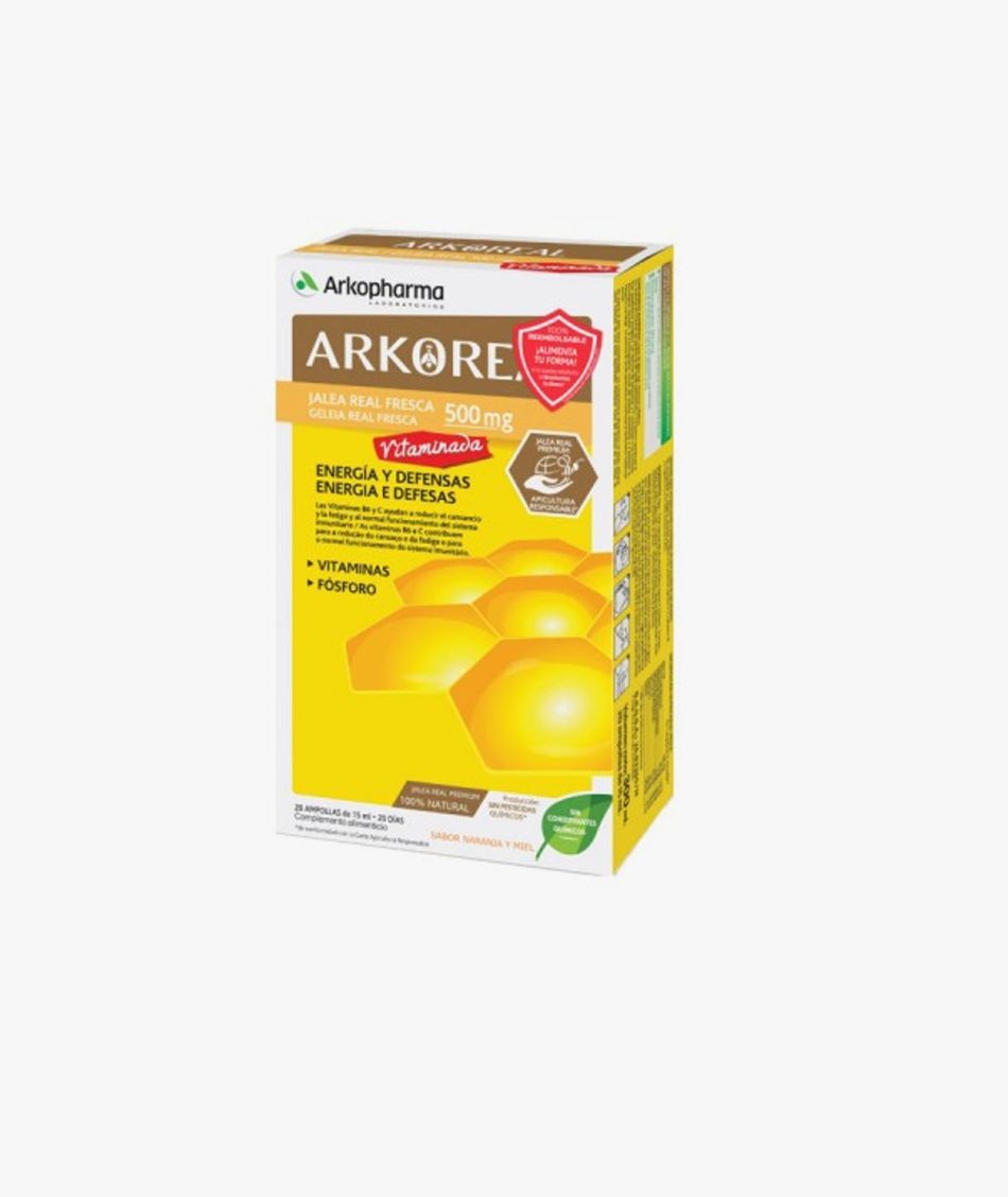 Complemento alimenticio a base de jalea real, vitaminas y fósforo. Ayuda a reducir en cansancio y la fatiga y al normal funcionamiento del sistema inmunitario.