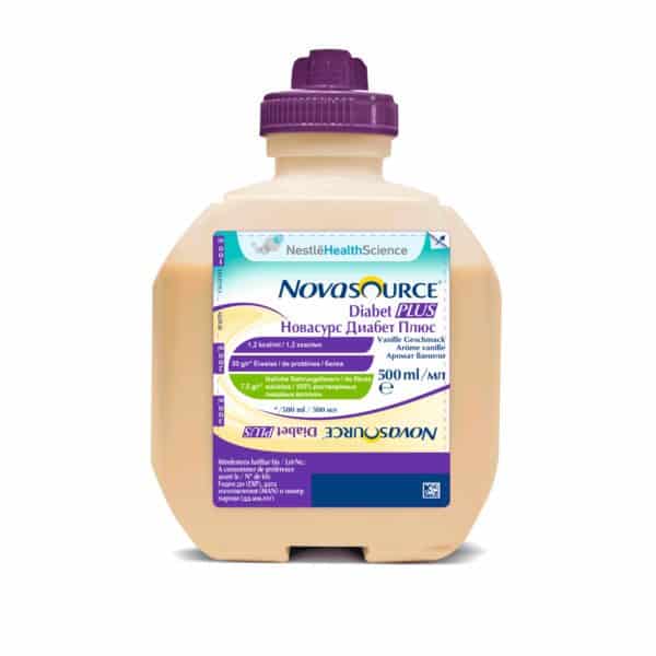 Novasource Diabet Plus 12 SmartFlex 500 ml es un alimento dietético hipocalórico e hiperproteico con fibra y ácido grasos DHA y EPA, indicado para la nutrición de pacientes con diabetes, con problemas de ingestión, digestión, absorción y desnutrición.