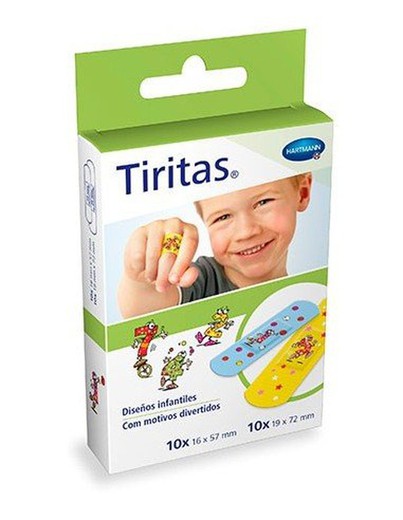 Tiritas con diseños infantiles, elaboradas con película resistente al agua y repelentes de la suciedad, para la protección de pequeñas heridas. Transpirables. Bien toleradas por la piel. No se adhieren a la piel.