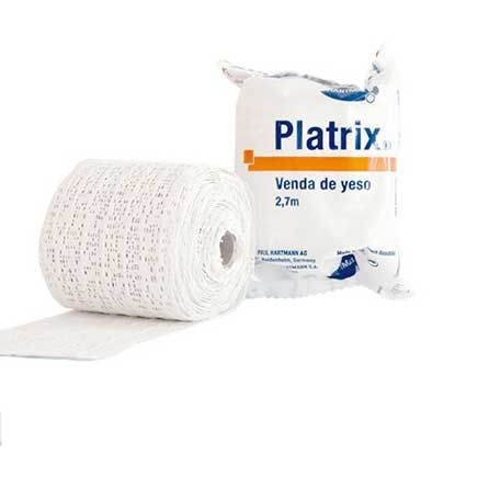 Hartmann Platrix® venda enyesada está elaborada con yeso convencional blanco de gran calidad y está combinado con una base de algodón que protege del contacto con la piel. Es de gran resistencia y no se deshilacha. Además, puede moldearse durante aproximadamente 3 minutos, alcanzando la total solidificación a las 24-48 horas.