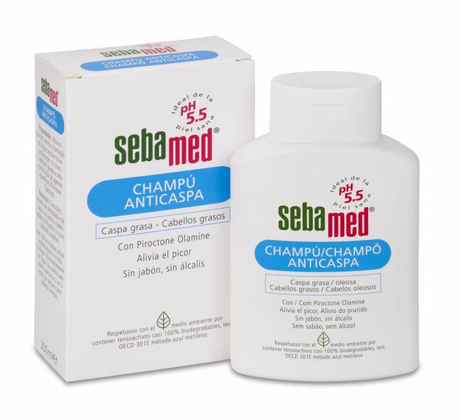 El champú anticaspa Sebamed ayuda a combatir la caspa grasa y los cabellos grasos. Con Piroctone Olamine. Alivia el picor y no contiene jabón ni álcalis.