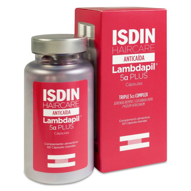 Lambdapil 5α Plus es un complemento alimenticio con propiedades que actúan en el crecimiento saludable del pelo y evitan su caída, su fórmula está elaborada con Triple 5α complex: extractos de Serenoa repens, Cucurbita pepo y Pygeum africanum y también combina ingredientes específicos con beneficios capilares, como el zinc, la biotina y el extracto de equisetum arvense. Es un producto que ayuda a fortalecer el pelo e inhibe los factores que detonan la caída del mismo. Contribuye a tener una melena saludable, y también regula la caspa y el cuero cabelludo graso.