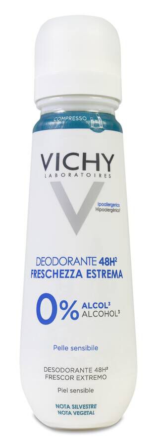 Vichy Desodorante Mineral Frescor Extremo es un desodorante que no contiene alcohol, es mineral e hipoalergénico.