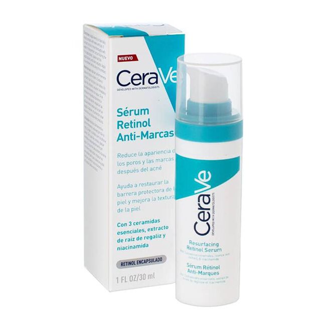 Cerave Resurfacing Sérum Anti-marcas con Retinol es un serum antimarcas con retinol encapsulado para ayudar a rejuvenecer la piel. Entre sus beneficios destaca por: